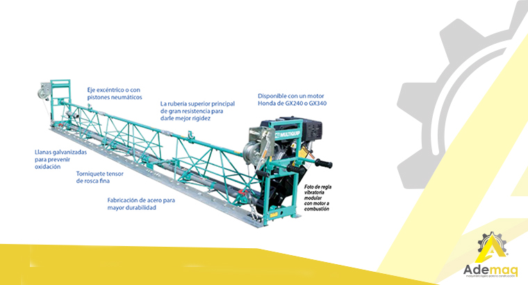 Produce 8000 vibraciones por minuto,la regla vibratoria con armadura de acero de construcción robusta hecha para resistir el manejo rudo en obra. Puede nivelar y consolidar paños de hasta 12 pulgadas (305mm) de espesor de manera confiable y consistente.