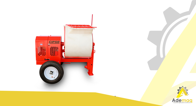 Mezcladora de mortero de 9 Pies cúbicos, mecánica motor Honda 8 HP, peso 297 Kg. Olla polietileno.